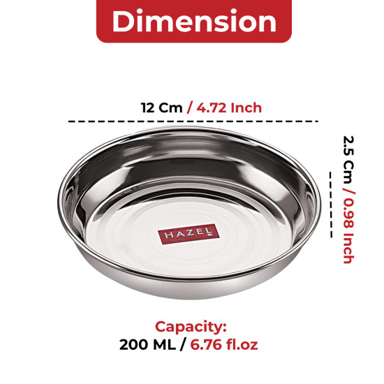 These stainless steel dishes set for dinner and dessert are incredibly versatile. You can serve your delicious desserts on these stainless steel dinner plates or use them as serving dishes set for snacks. With their pretty exotic and stylish appearance these serving platters come with a glossy finish making them ideal for serving food to guests. The stainless steel thali set from HAZEL ensures durability and style perfect for any occasion. Storing this stainless steel plates set of 6 is hassle-free; you can easily stack them up on top of one another to save space in your kitchen cabinet.\"\"