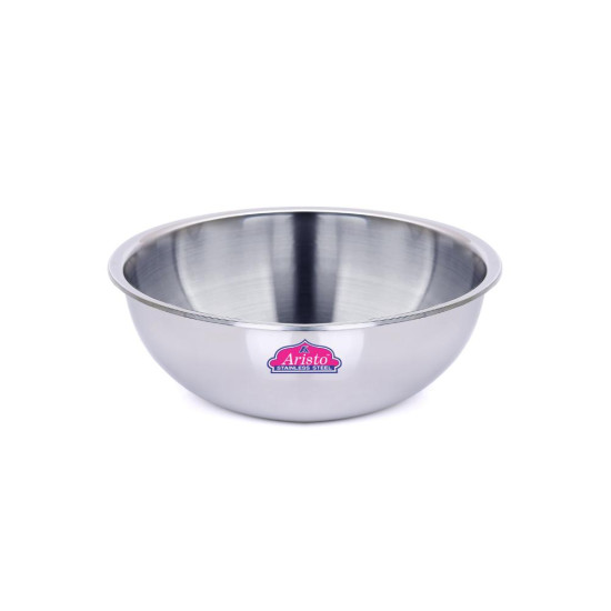 Aristo Tri-Ply Kadhai / Tasla is a beautifully carved cookware made of three layers of metal fused together. Stainless steel comprises the top and bottom layers, whereas aluminium makes the middle layer. The depth of the utensil also helps make a wholesome meal for a complete family. This TASRA is extra durable and endlessly versatile. Whatever you are cooking, Steel (Triply) multi-layer design distributes heat evenly for uniform browning, which is why it\'s a must for serious kitchens.