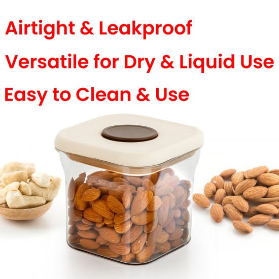 Upgrade your kitchen organization with this premium One-Touch Airtight Plastic Container Set, designed for Indian homes. Featuring an easy-to-use pop-up lid mechanism, these BPA-free food storage jars are perfect for storing grains, pulses, snacks, sugar, flour, namkeen, dry fruits, and even liquids like juice or soup. The airtight and leakproof seal keeps contents fresh and moisture-free, while the transparent body allows for easy identification of stored items. Crafted with a space-saving, stackable design, these containers fit perfectly in your kitchen shelf, modular cabinets, fridge, or pantry. Whether you\'re looking for kitchen containers for storage, plastic jars for kitchen, or multipurpose pantry organizers, this set combines durability, style, and convenience for modern households.