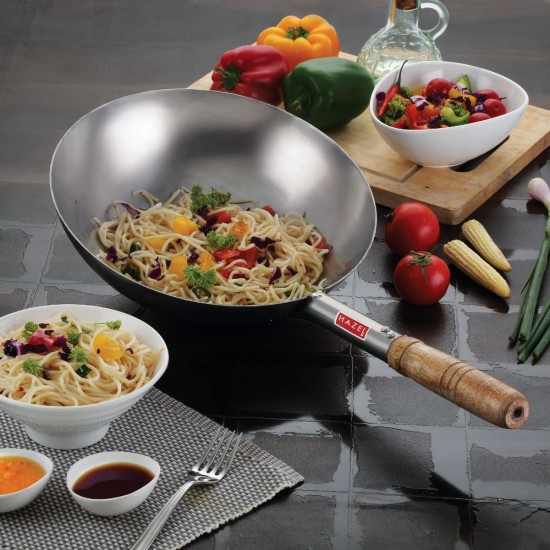 chinese wok pan is strong and versatile addition to your kitchen makes curries and vegetables. Enjoy cooking all types of meals, from roasted vegetables, stir fry, seafood, and more! This deep stainless steel frying pan can be used for a variety of cooking techniques, from stir frying, deep frying and steaming to making soups and stews. It can be used at hot wok restaurant.