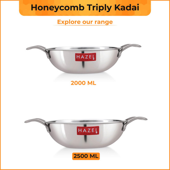 Durable Triply Stainless Steel with honeycomb pattern for heat distribution.