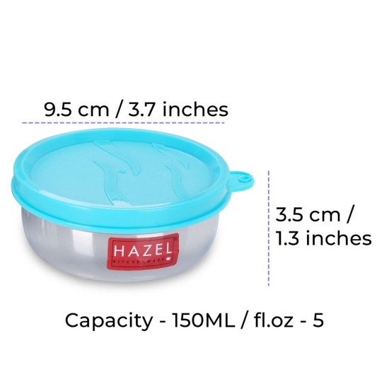 Introducing our HAZEL Air Tight Leak Proof Stainless Steel Containers with Plastic Lid, the perfect solution for all your tiffin and food storage needs. HAZEL containers are designed to keep your food fresh and secure, whether you\'re taking it to work or storing it in the refrigerator. Made from high-quality stainless steel, these containers are durable, rust-resistant, and easy to clean. The plastic lids are also durable and provide an airtight seal, preventing any leaks or spills. You can trust this container to keep your food fresh and secure during transportation or storage. HAZEL containers are ideal for tiffin or lunch box use, as well as food storage at home. The compact size makes it easy to pack in a bag or backpack, and the airtight seal ensures that your food stays fresh and delicious. It\'s also great for storing leftovers or meal prep, as the stainless steel material is safe for use in the refrigerator or freezer. The stainless steel material is also safe for use in the dishwasher, making cleanup a breeze. In summary, HAZEL Air Tight Leak Proof Stainless Steel Container with Plastic Lids is the perfect solution for anyone looking for a high-quality and durable container for tiffin or food storage. The airtight seal and leak-proof design will give you peace of mind, knowing that your food is safe and secure. With its compact size, and dishwasher safe, and rust-resistant stainless steel material, this container is a versatile and convenient addition to your kitchen.