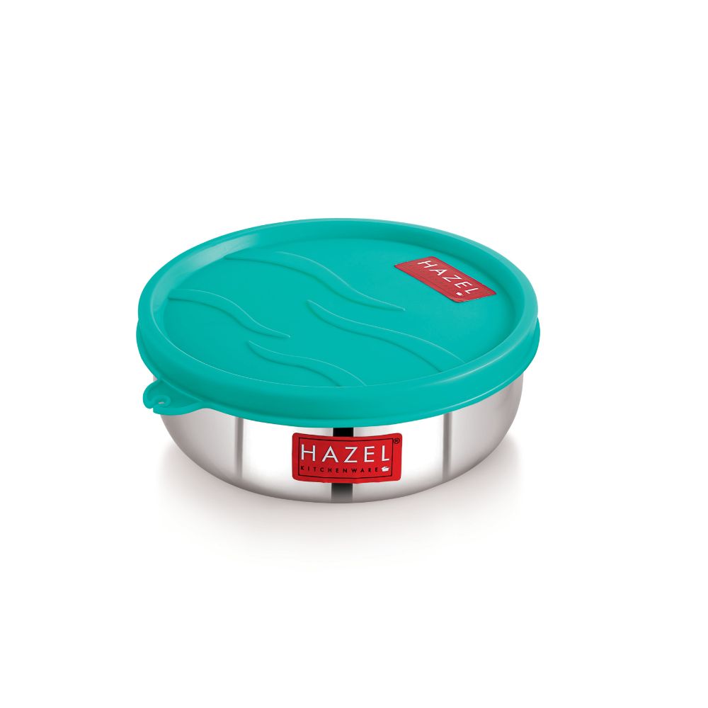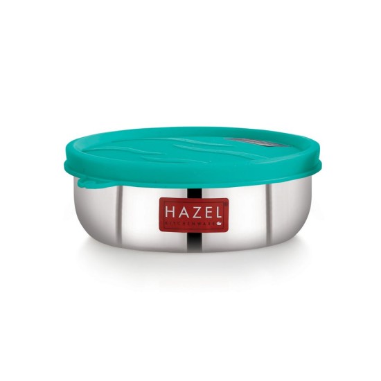 Introducing our HAZEL Air Tight Leak Proof Stainless Steel Containers with Plastic Lid, the perfect solution for all your tiffin and food storage needs. HAZEL containers are designed to keep your food fresh and secure, whether you\'re taking it to work or storing it in the refrigerator. Made from high-quality stainless steel, these containers are durable, rust-resistant, and easy to clean. The plastic lids are also durable and provide an airtight seal, preventing any leaks or spills. You can trust this container to keep your food fresh and secure during transportation or storage. HAZEL containers are ideal for tiffin or lunch box use, as well as food storage at home. The compact size makes it easy to pack in a bag or backpack, and the airtight seal ensures that your food stays fresh and delicious. It\'s also great for storing leftovers or meal prep, as the stainless steel material is safe for use in the refrigerator or freezer. The stainless steel material is also safe for use in the dishwasher, making cleanup a breeze. In summary, HAZEL Air Tight Leak Proof Stainless Steel Container with Plastic Lids is the perfect solution for anyone looking for a high-quality and durable container for tiffin or food storage. The airtight seal and leak-proof design will give you peace of mind, knowing that your food is safe and secure. With its compact size, and dishwasher safe, and rust-resistant stainless steel material, this container is a versatile and convenient addition to your kitchen.