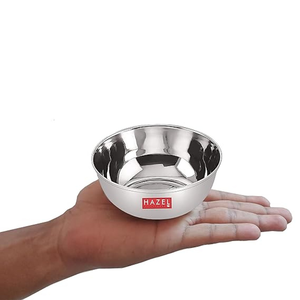 Packaging content (Approximate) : Set of 6 Plates Diameter: 11 cm Height: 3.75 cm Weight : -approximately 550 gms Material Used:-Stainless SteelProduct Description: Vatti height is dipper & can be used for serving various liquid food dishes on d\"\"