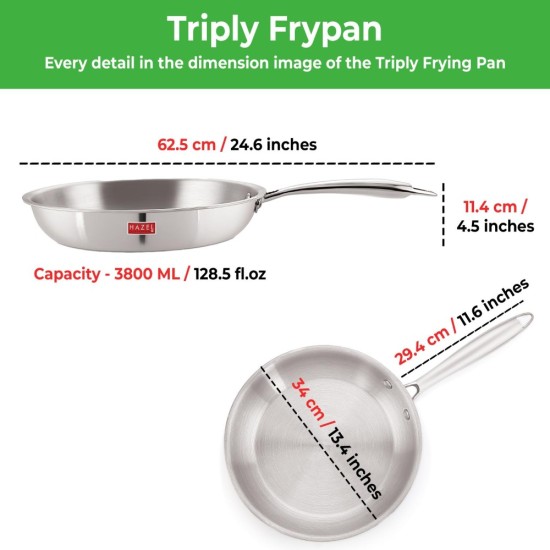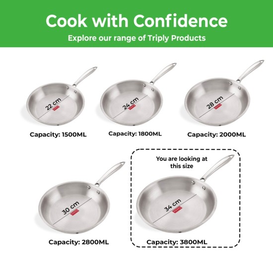 Introducing the Tri-Ply Frypan, designed for superior cooking performance. With its stainless steel surface that doesn\'t alter flavors, and multi-layer construction for quick, even heat transfer, it\'s perfect for deep frying, broiling, and sautéing. Featuring an ergonomic handle, it works on all stovetops, including induction, and ensures even heating, reduced oil use, and durability with its 2.5mm thickness. Ideal for every kitchen for consistent cooking results.